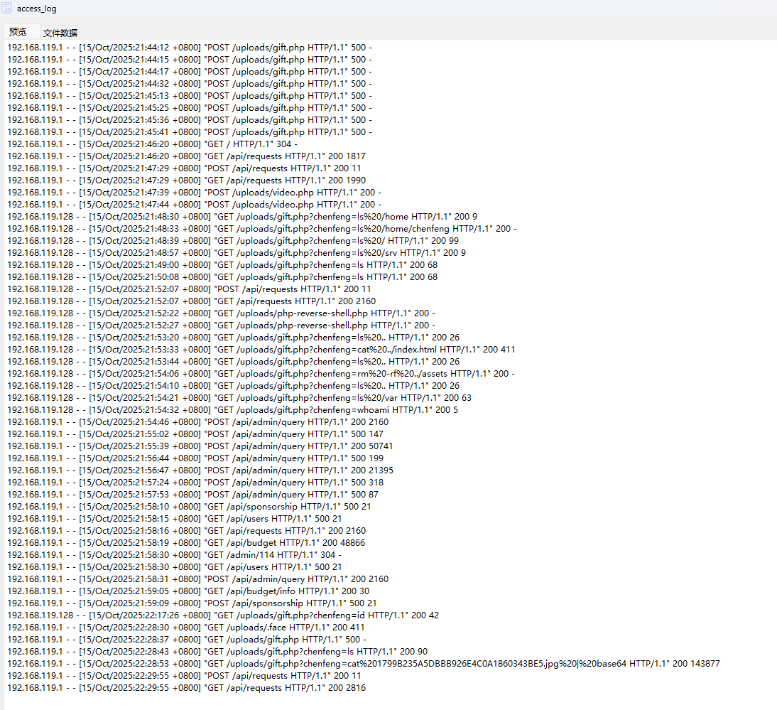 结合sponsorship报错不存在该表,猜测执行了删除数据表的指令,最后答案是192.168.119.1#drop table sponsorship