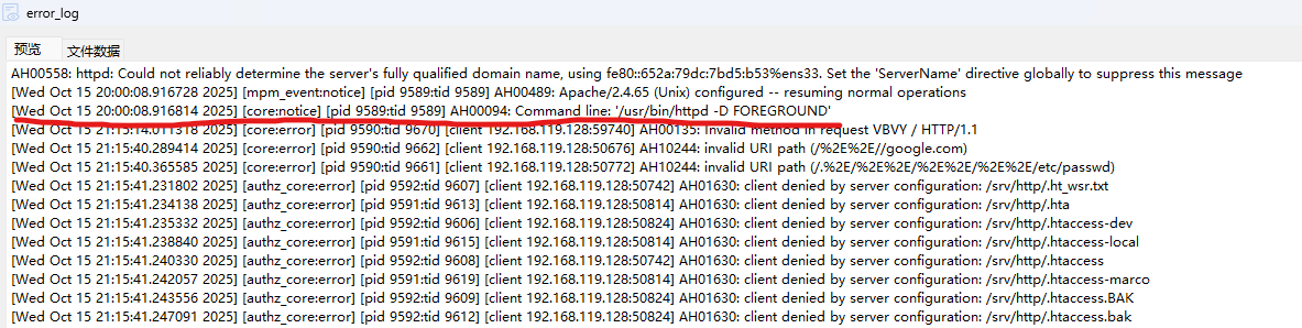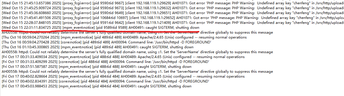 去/var/log/httpd翻日志,在error_log中发现启动与关闭的时间: