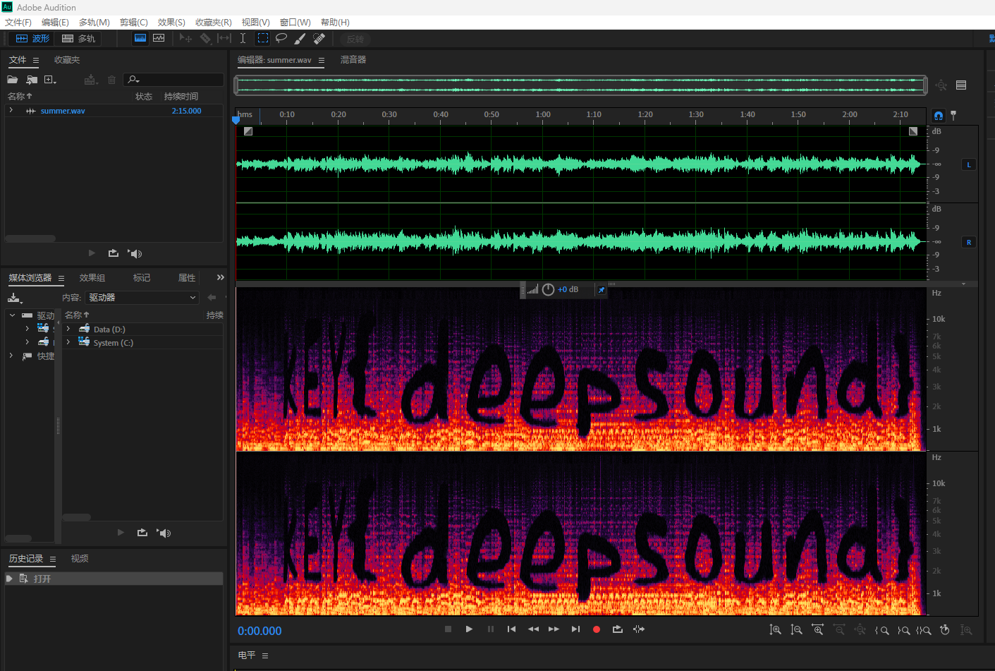 解压文件,是一个wav文件,听一下你会发现中间明显听感不对,这种情况很有可能是频谱被修改了,我们用AU看一下: