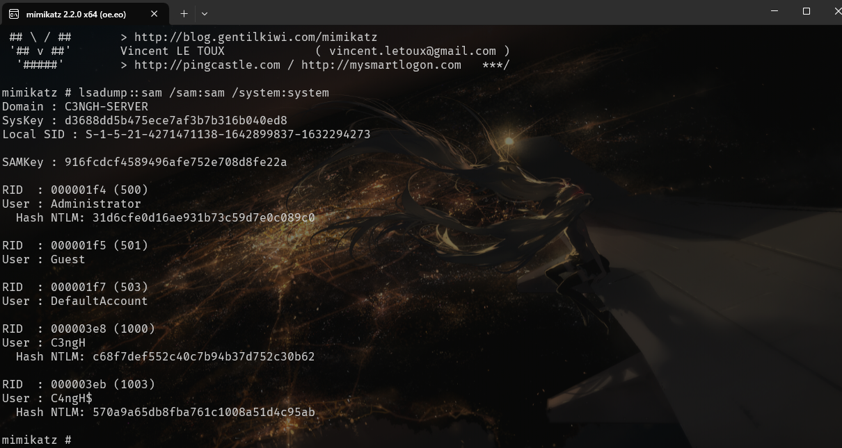 关掉虚拟机,FTK读取虚拟机磁盘,把SAM和SYSTEM注册表提出来,mimikazt提取hash: