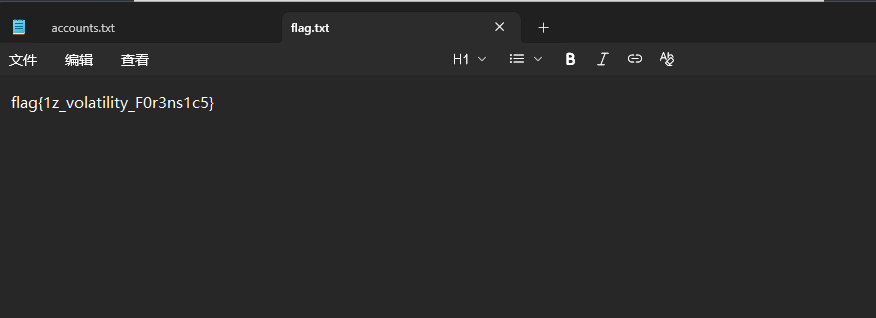 内存取证,直接读Desktop有什么,发现flag.zip和hint.txt。zip有密码,hint告诉我们桌面画图泄露了密码。
