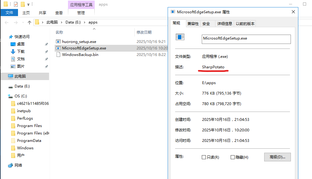 登录到虚拟机,翻了下文件发现了一个Potato提权文件:
