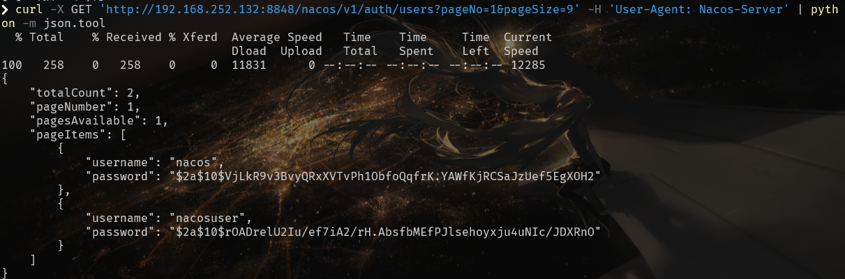 访问nacos/v1/auth/users?pageNo=1&pageSize=9就可以看到除了默认用户nacos以外的用户了: