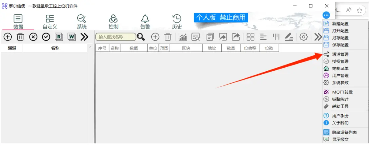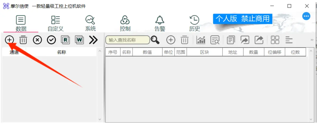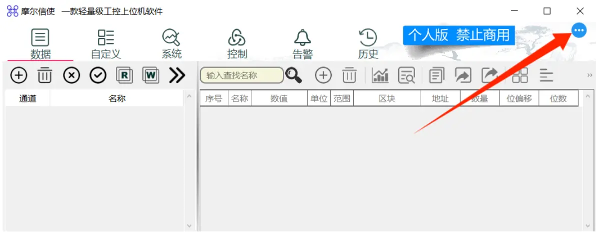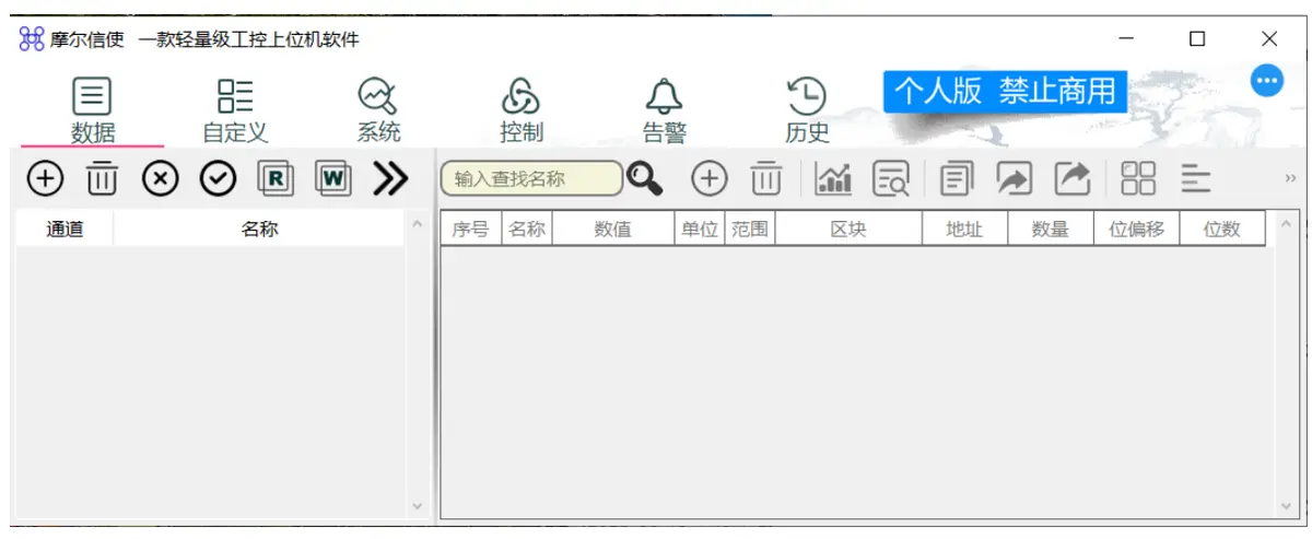 1.打开 MThings(第四章中 第五项提到的上位机下位机软件 摩尔信使),界面如下。