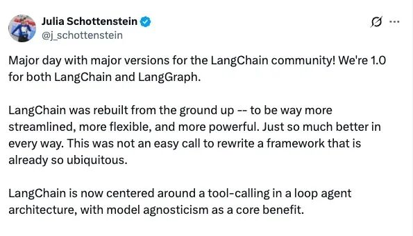 任职于 LangChain 的 Julia Schottenstein 发帖表示: