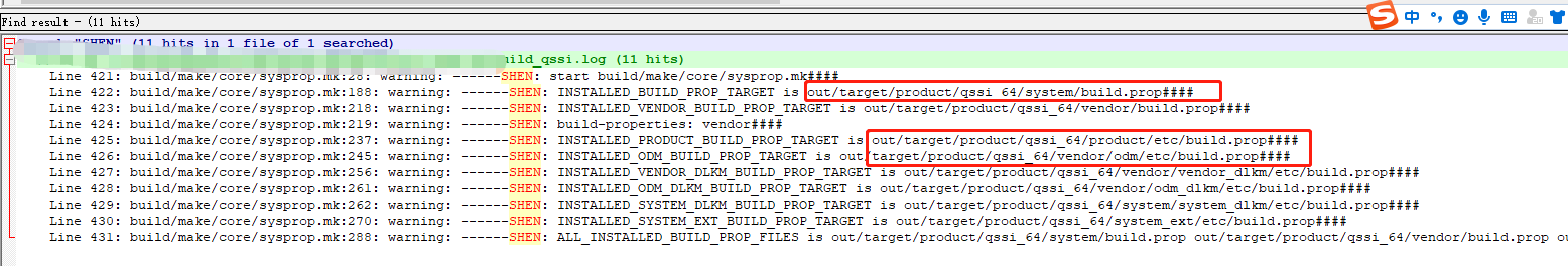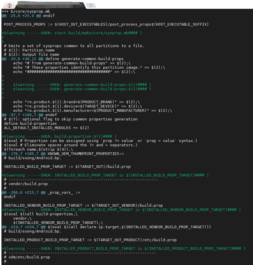 为了更好的解读sysprop.mk的编译流程,我添加日志如下: