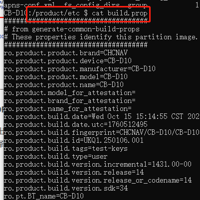 这里就是build-properties函数的输出参数,即根据前文中A-F的输入参数,最终整理输出到xxx/out/etc/buid.prop文件,我们可以在编译out目录下进行查看,也可以在手机的xxx/etc.build.prop文件中进行查看。
