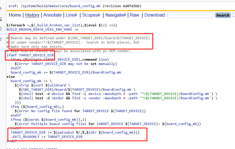 从这段逻辑中,TARGET_DEVICE_DIR 会被设置为 找到的 BoardConfig.mk 文件所在目录的路径,即如果找到的是 vendor/samsung/universal9820/BoardConfig.mk,那么 TARGET_DEVICE_DIR 就是 vendor/samsung/universal982