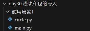 另外创建一个'main.py'作为主要的运行文件。根据 main.py 和 circle.py 的文件位置,导入模块的方式和在终端运行的方法存在差异。在此之前,先明确‘根目录’,通常是打开的项目文件夹位置,在导入模块式,会从根目录开始查找。
