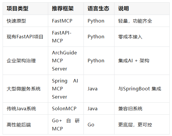 本文将梳理当前主流的MCP开发框架,按语言生态分类,帮助开发者根据项目需求做出合理选型。
