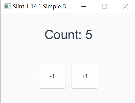 此时会弹出一个带计数器的窗口,点击 “+1”“-1” 按钮,中间的数字会实时变化,而且没有讨厌的终端窗口—— 恭喜你,第一个 Slint 程序跑通了!