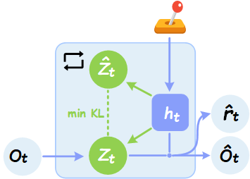 - 将场景/世界状态压缩为一个低维变量,并在该紧凑表示上进行动力学建模。