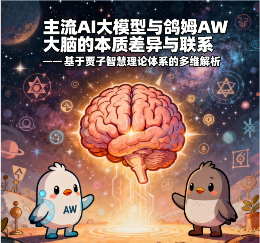 总之,主流 AI 大模型与鸽姆 AW 大脑的对比研究揭示了 AI 技术发展的两条不同路径。前者代表了 "智能" 的极致追求,后者体现了 "智慧" 的崇高理想。在 AI 技术日益渗透人类生活各个领域的今天,我们不仅需要高效的智能工具,更需要具有智慧的文明伙伴。贾子智慧理论体系为我们提供了思考这一问题的新框架,也为 AI 技术的未来发展指明了方向。