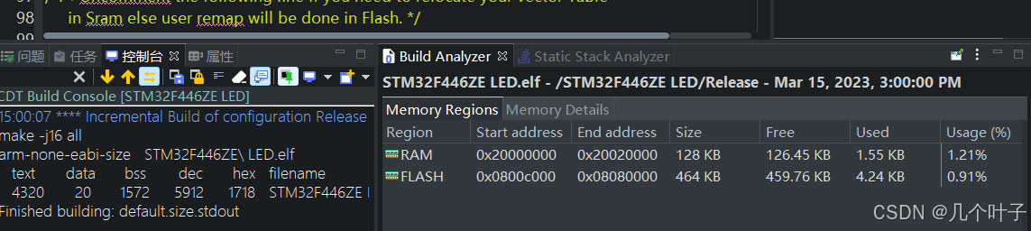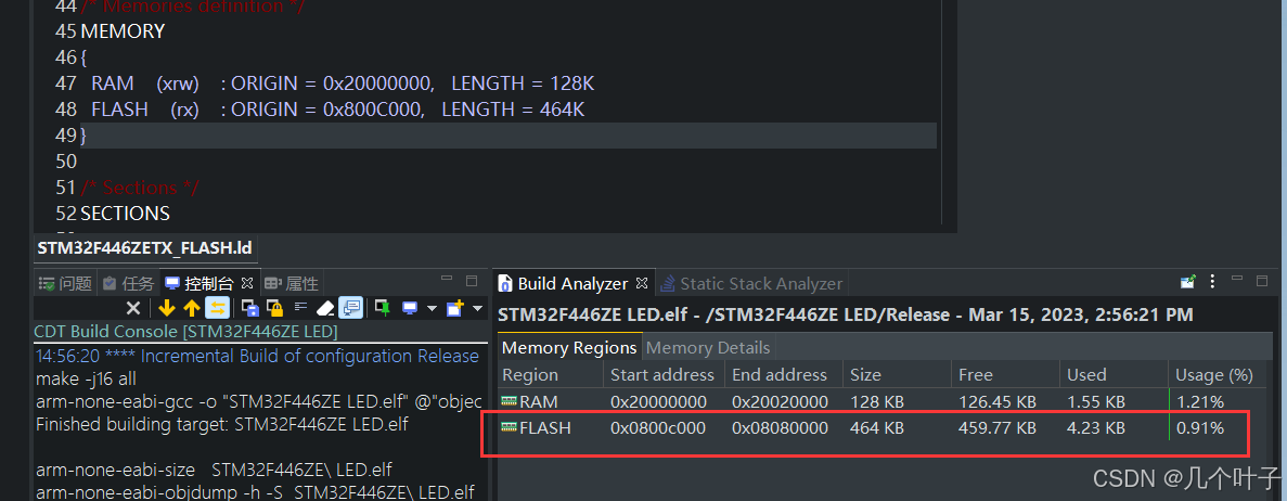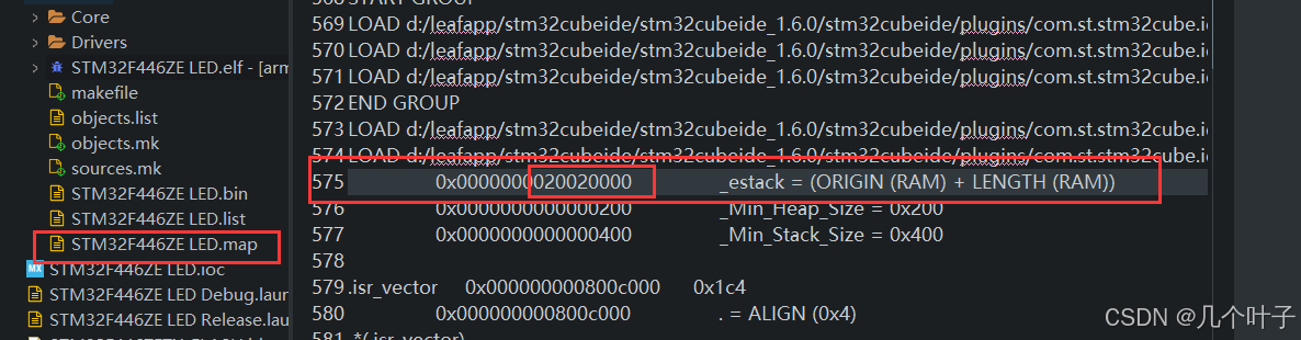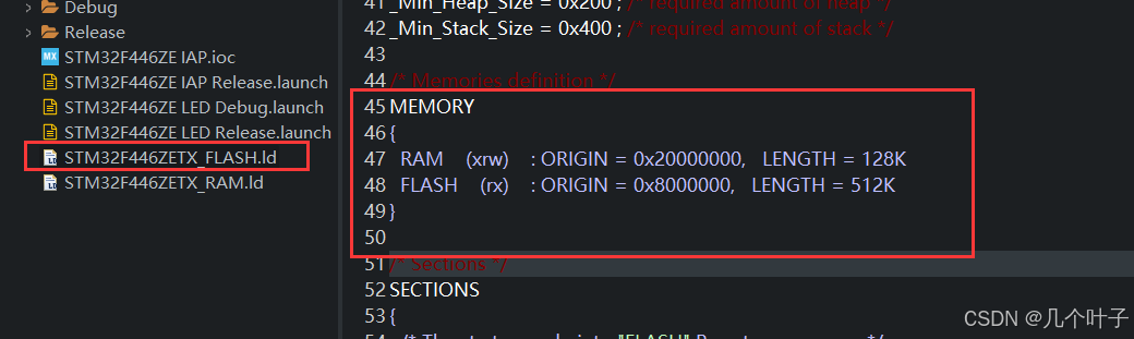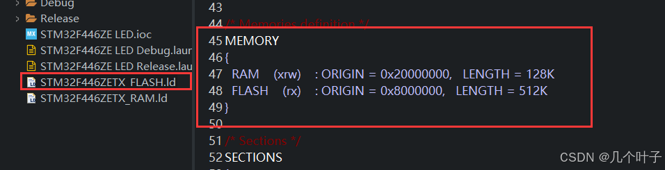 修改内部flash链接文件(STM32F446ZETX_FLASH.ld):
