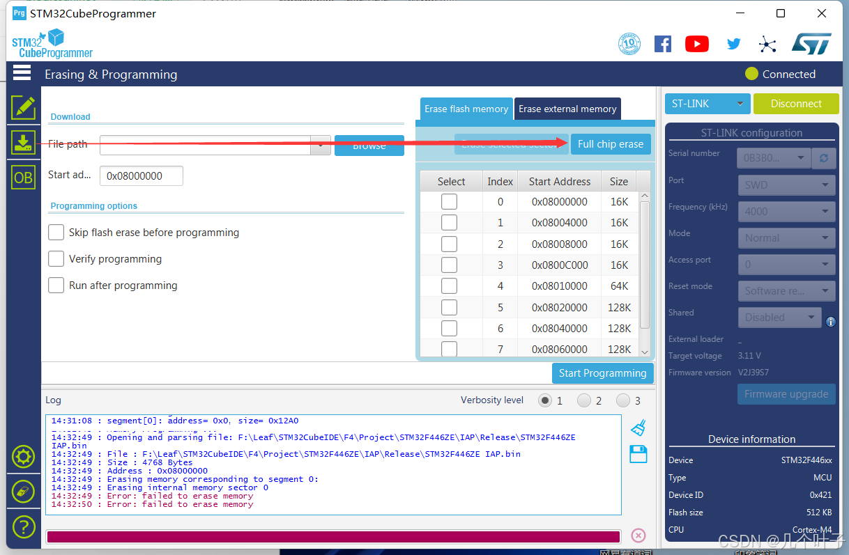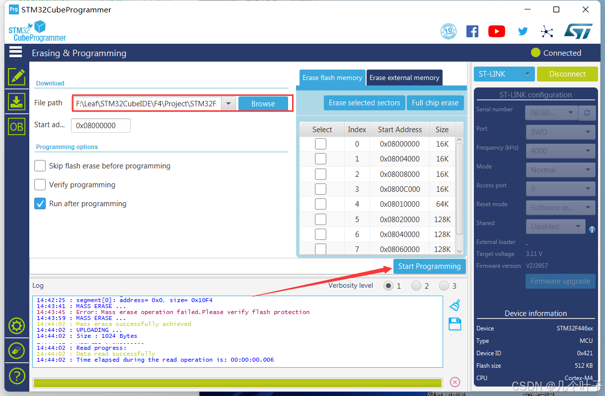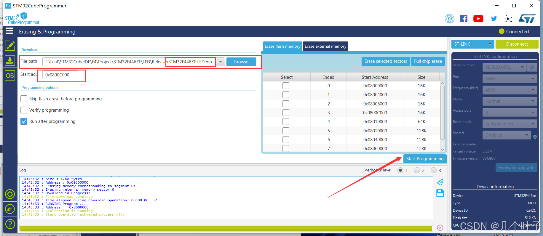 STM32F4 的内部闪存(FLASH)地址起始于 0x08000000,一般情况下,程序文件就从此 地址开始写入。