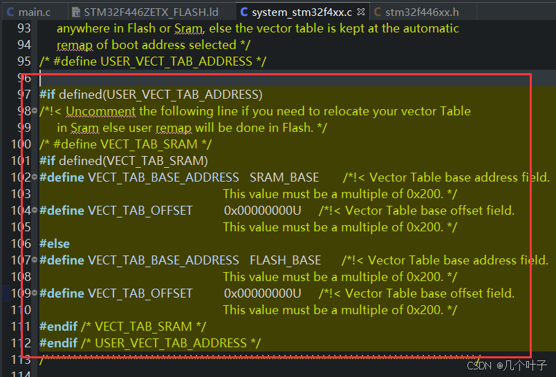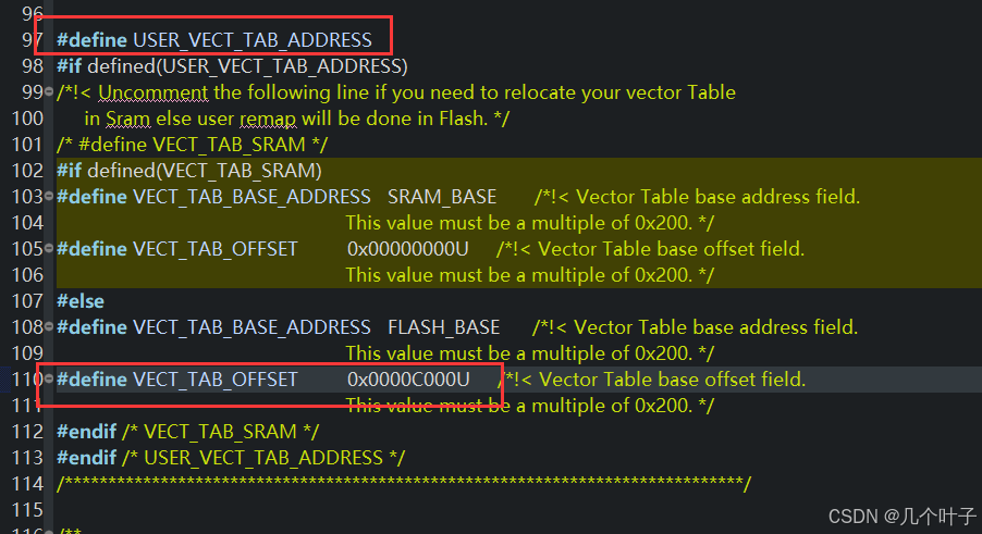 添加宏定义 #define USER_VECT_TAB_ADDRESS并且修改VECT_TAB_OFFSET的值为 0xC000,这里必须为0x200的整数倍即512的整数倍。