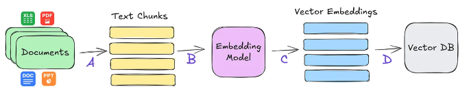 A. 数据准备:首先,我们需要识别并收集需要索引的各种文档。然后,我们将这些文档内容切割成一个个易于处理的小块(chunks)。