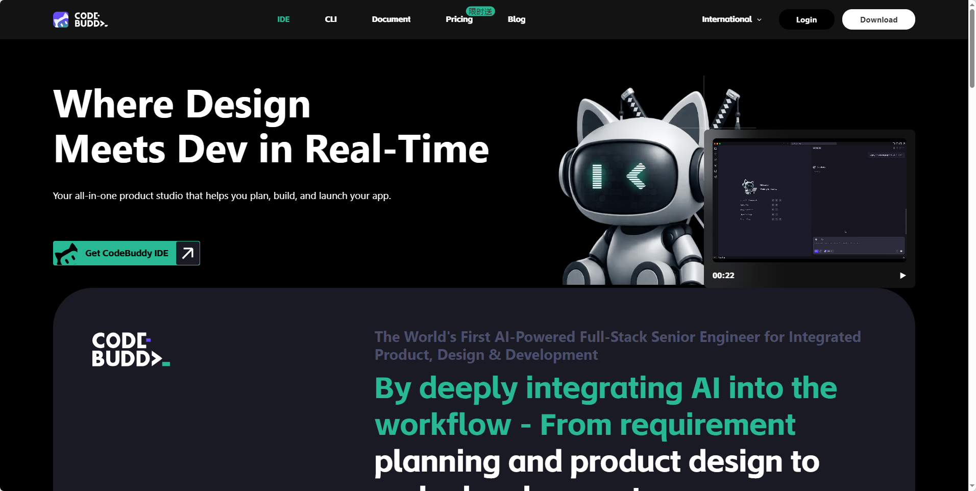 CodeBuddy IDE 是腾讯云推出的全新AI集成开发环境,定位为全球首个实现“产品—设计—研发部署”全流程一体化的AI全栈工程师工作台。它不再只是一个代码补全工具,而是从创意源头介入,支持用户通过自然语言对话,无需编写一行代码即可完成从产品构思、交互设计到前后端开发与部署的完整闭环,极大降低了非技术背景创作者的开发门槛25。