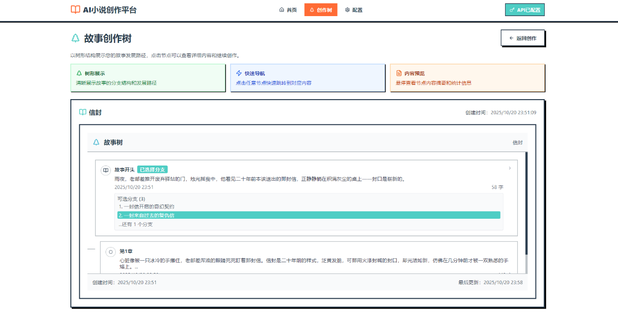 该平台旨在为创作者、小说爱好者和娱乐用户提供一个简单易用的AI辅助创作工具,通过树形结构展示故事发展脉络,让每个用户都能创作出独特的故事。