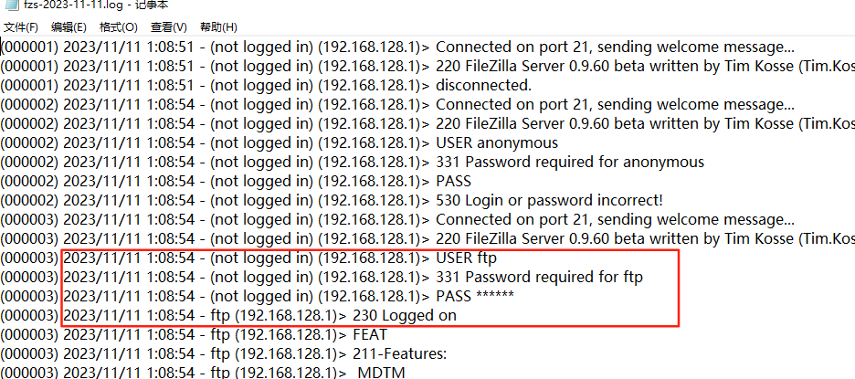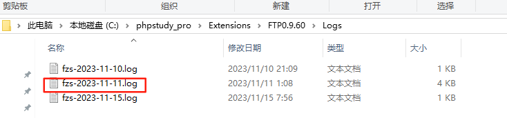 打开C:\phpstudy_pro\Extensions\FTP0.9.60\Logs查看FTP的登录日志
