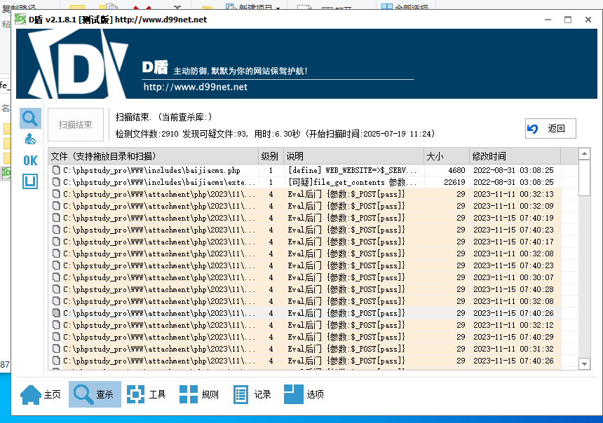上传D盾到目标机器,把C:\phpstudy_pro\WWW目录放入D盾扫描