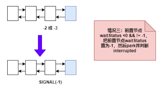 前置节点 waitStatus < 0 但不等于 -1,如下图: