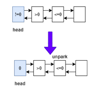 head 节点 waitStatus 不等于 0。这里有两种情况(在方法 unparkSuccessor):
