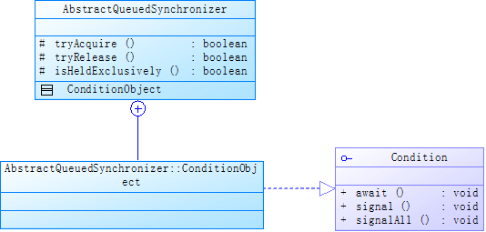 Java AQS 的条件变量等待队列是基于接口 Condition 和 ConditionObject 来实现的,URM 类图如下: