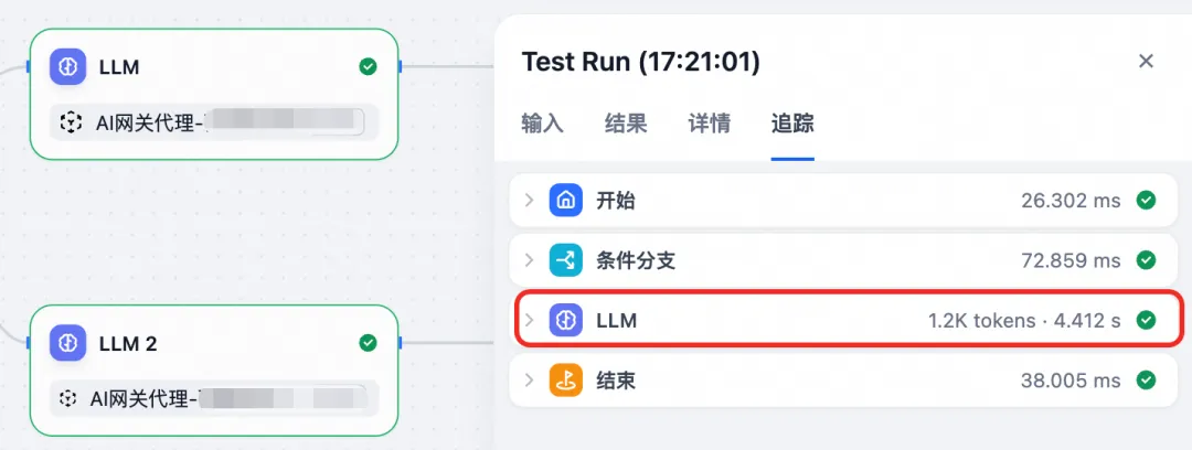 - 在 Dify 中运行 Workflow 或 Agent,验证通过 AI 网关代理访问 LLM 能正常返回结果,说明大模型出流量代理配置生效。