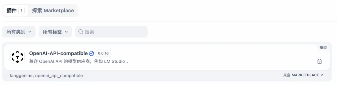前往 Dify 应用市场,安装插件 OpenAI-API-compatible。