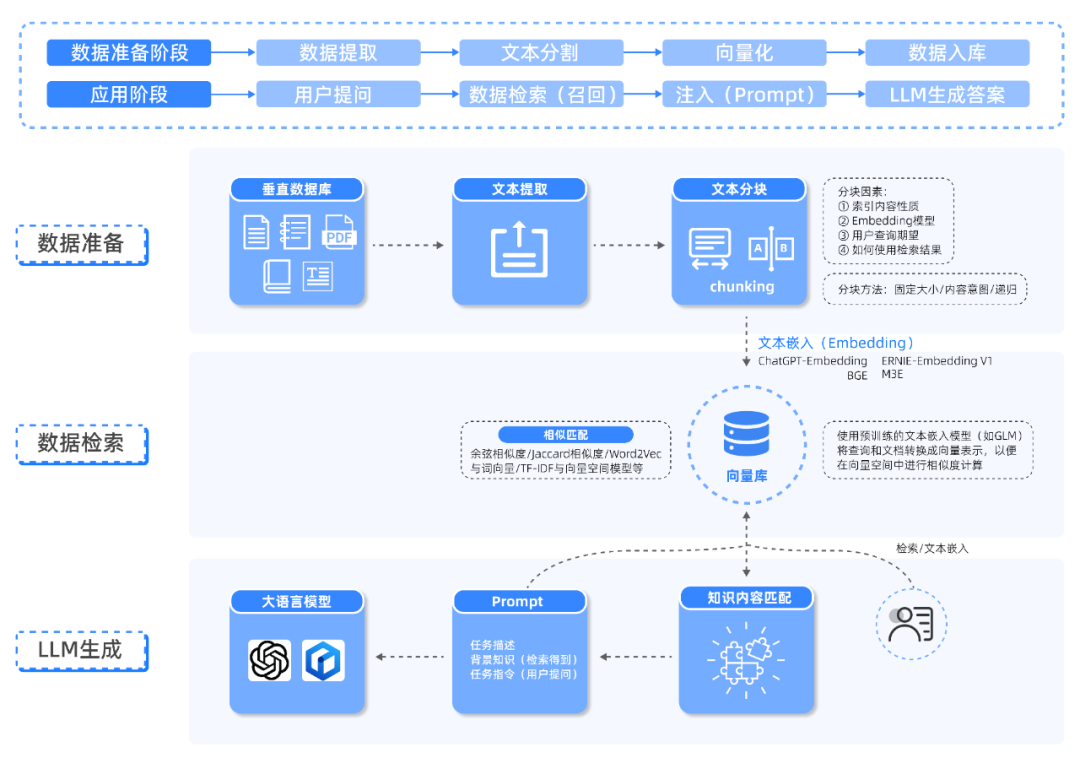 语义检索:通过余弦相似度等算法从向量库中召回Top-K相关文本块。