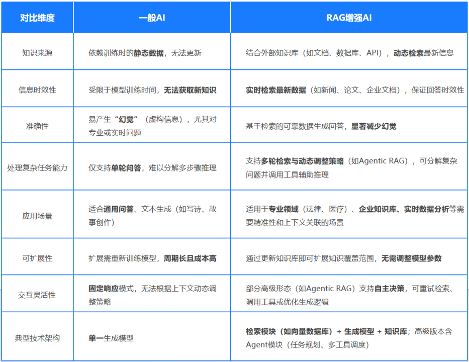 实时信息整合:RAG无需重新训练模型,即可通过更新外部知识库获取最新数据;
