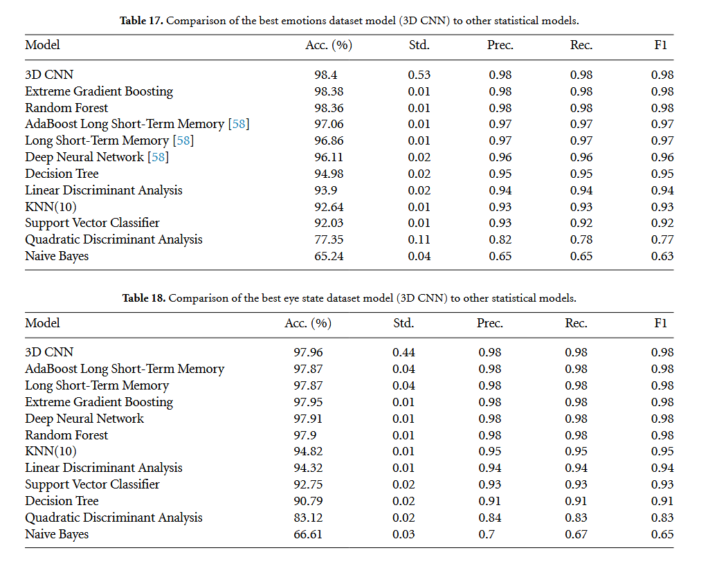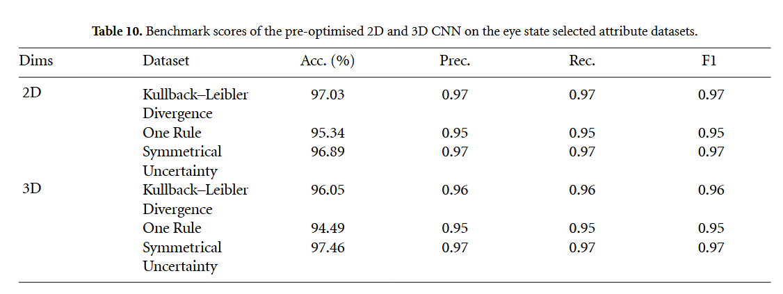 眼状态分类:过往 14 电极高斯支持向量机(SVM)准确率 81.2%,K-Star 聚类达 97%(但仅 1 名被试,泛化差),本文 10 名被试的 3D CNN 实现 97.96%,且泛化性更优。