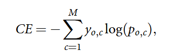 超参数:70/30 训练测试分割,100 个 epoch,批次大小 64,损失函数为类别交叉熵,公式如下: