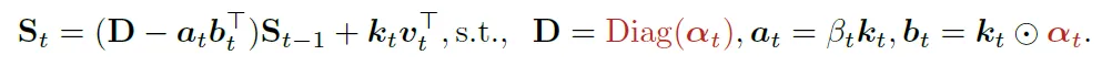 研究团队还将KDA与一种叫做DPLR(对角加低秩)的数学结构联系起来。DPLR是一种表达能力很强但计算复杂度很高的矩阵形式。KDA通过巧妙的参数绑定,在保持DPLR表达能力的同时,大大简化了计算。具体来说,KDA把DPLR公式中的两个独立变量绑定到同一个键向量上,这个看似简单的改动却带来了巨大的计算效率提升,减少了两次矩阵乘法和三个额外的矩阵计算,同时消除了数值精度问题。