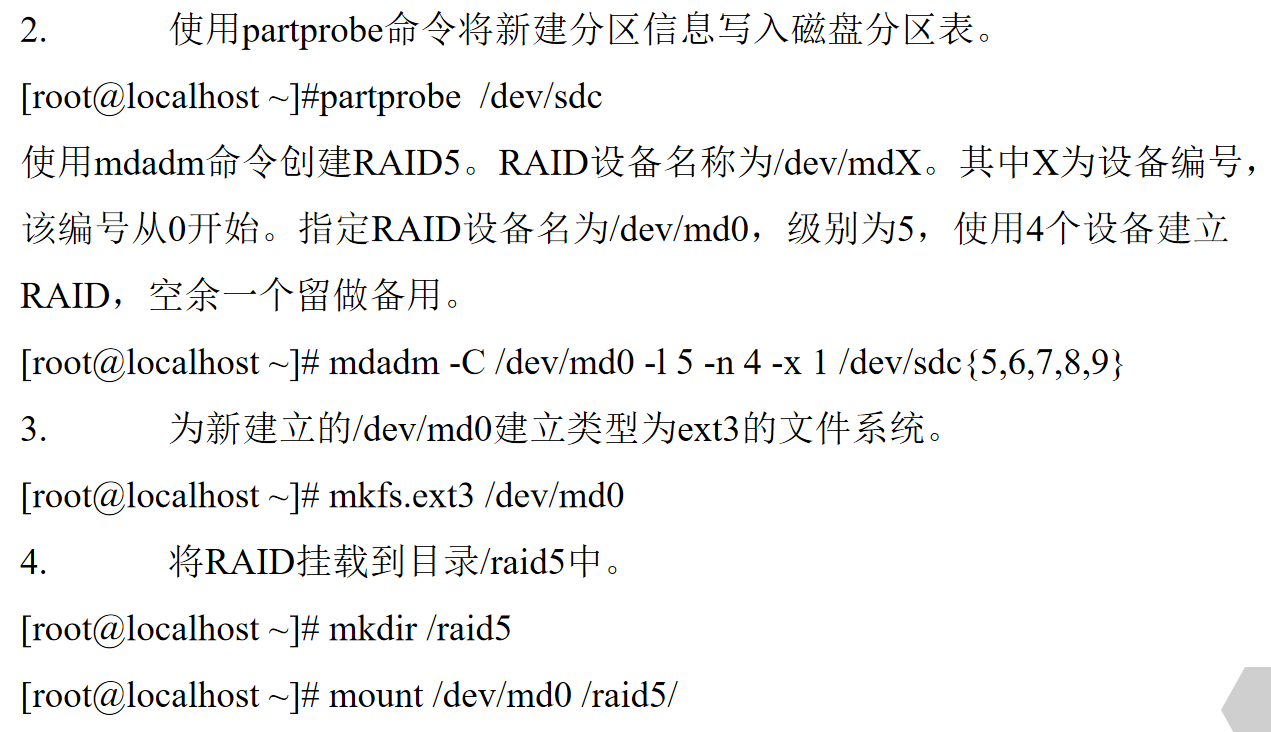 随着学院学生的增多,服务器的存储需求在增加,为此,IT协会的学生在服务器上安装了一块SCSI的硬盘,为了保证服务器上数据的安全性,将存放数据的磁盘分区设置为RAID5,以实现磁盘容错。具体要求为: