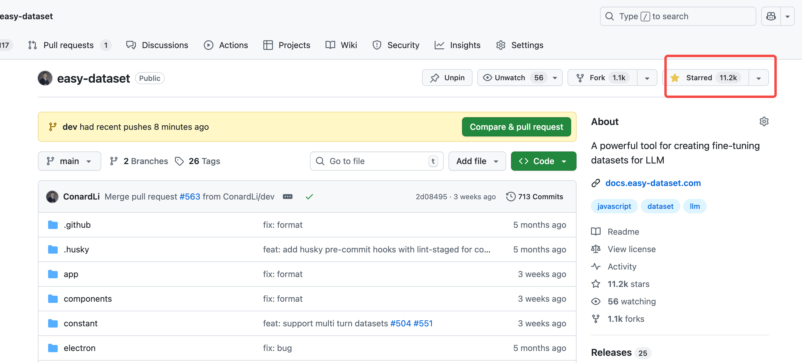 首先说几个好消息,Easy Dataset 自上线以来已经收获了 11.5K Star,下载数超过 700K: