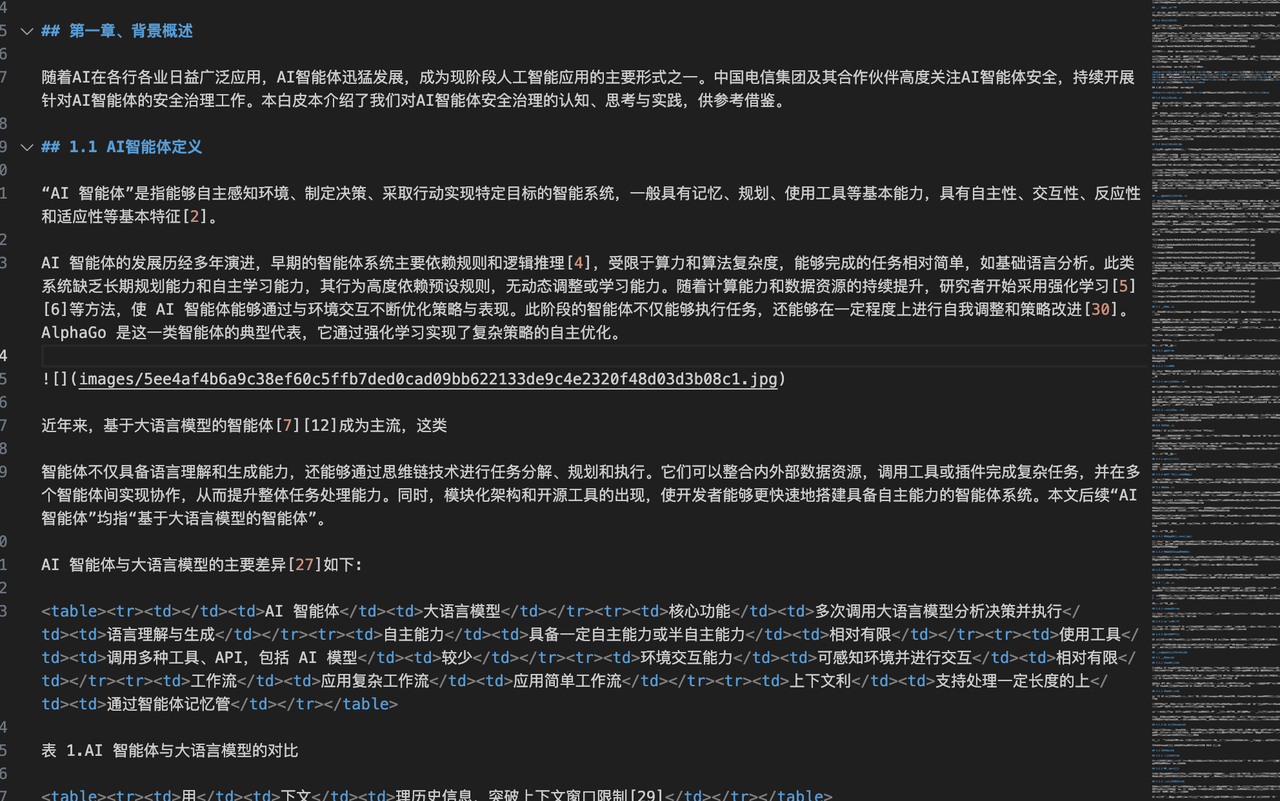 在这个例子中,我们来构造一份关于AI 智能体安全的数据集,这是一个比较新的领域,在不搜索公开资料的情况下,大部分模型不具备此类知识,我们从一些最新的文献来提取这些数据集。我们先来看一下我们的原始文献,《AI智能体安全治理白皮书》: