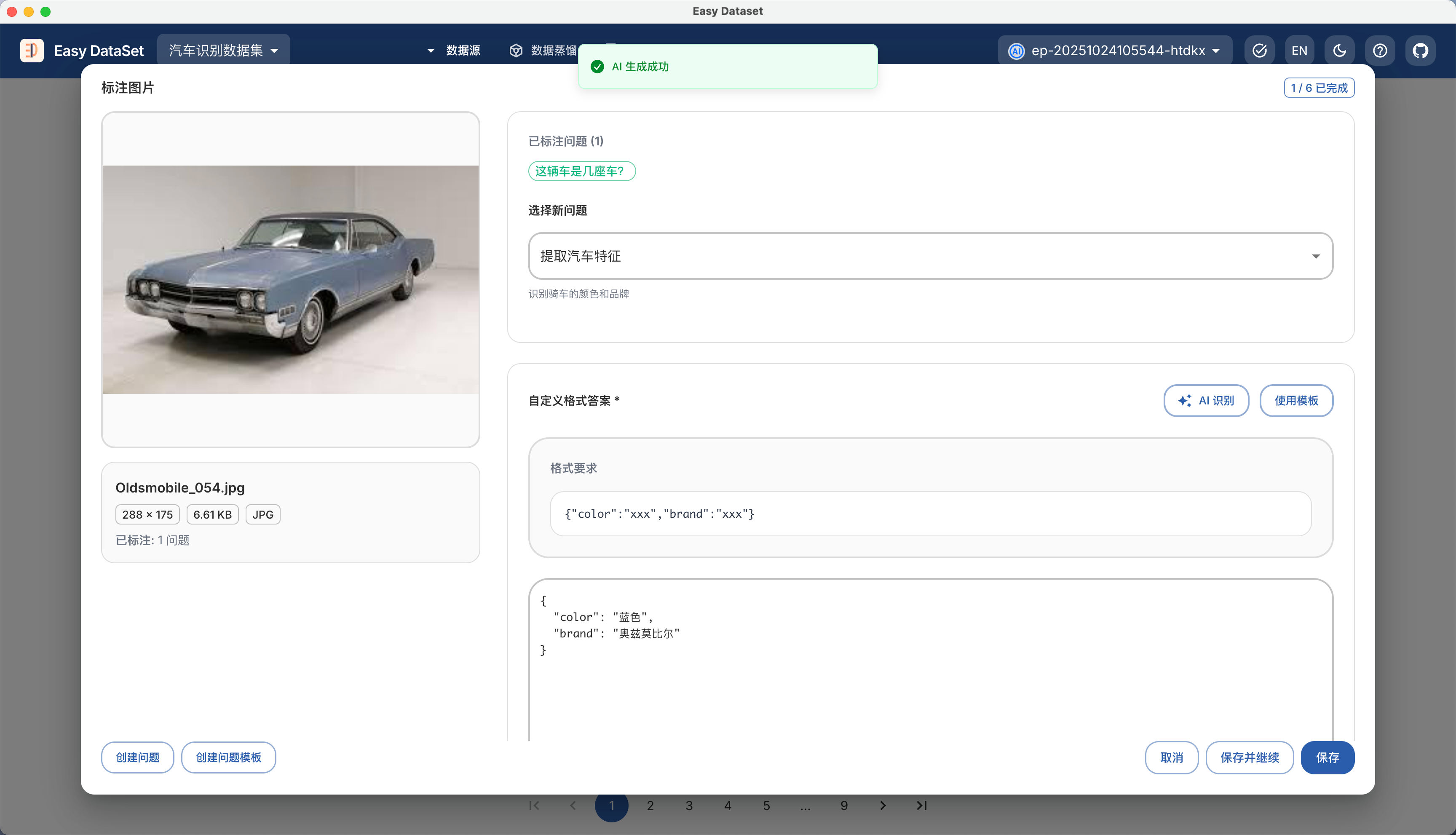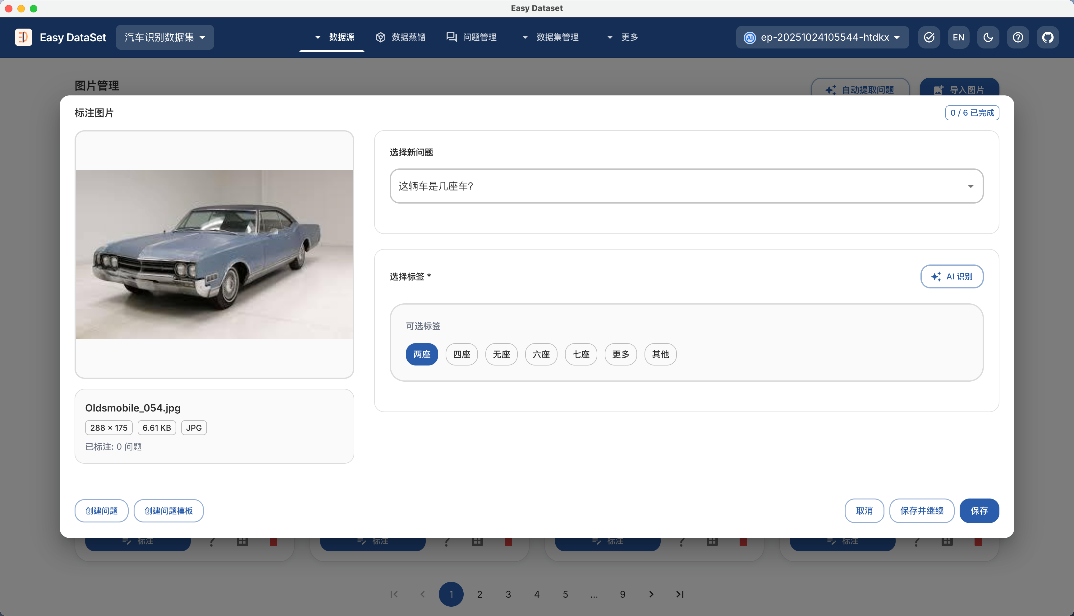 标注完成一个后,我们可以点击保存并继续,AI 将自动查找下一个还未完成标注的图片或问题: