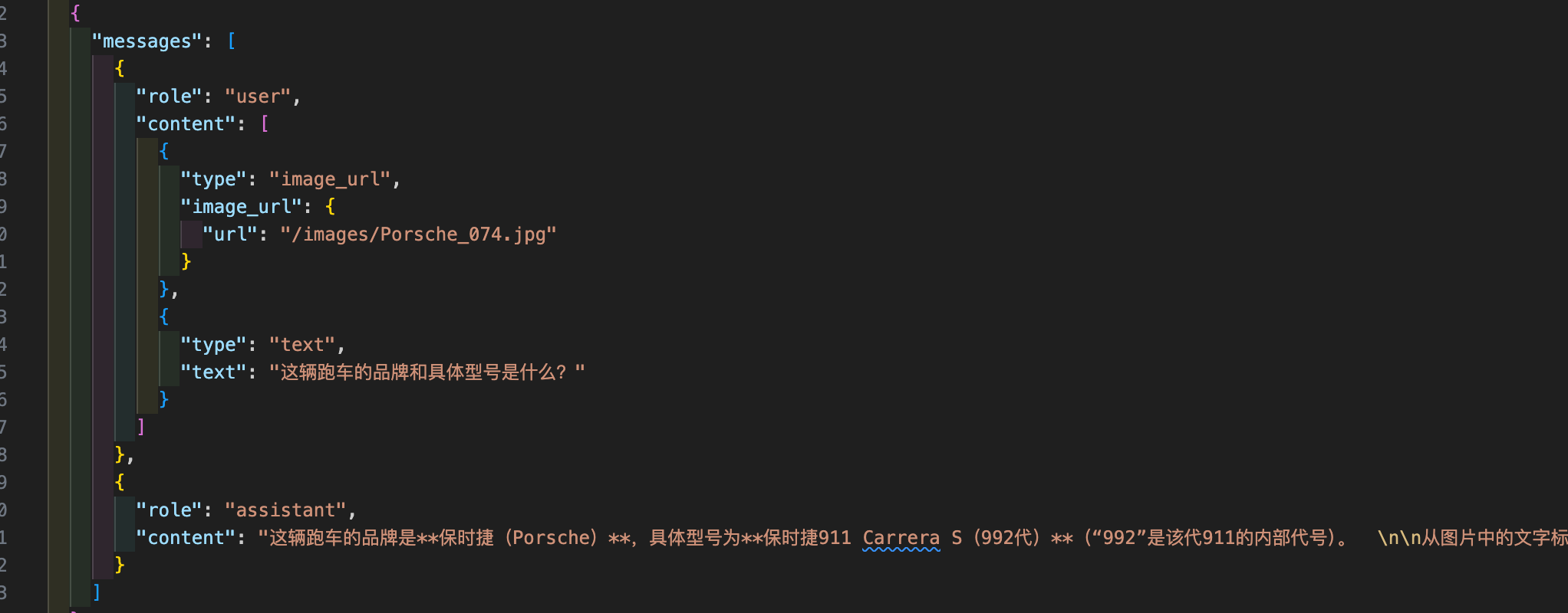 例如:提取汽车的更多特征,可能有多个固定的特征需要提取,我们可以自定义模型输出的 JSON 结构,一定要限定在 color、brand 两个字段上,这样每次识别的答案只会包含汽车品牌和颜色数据。