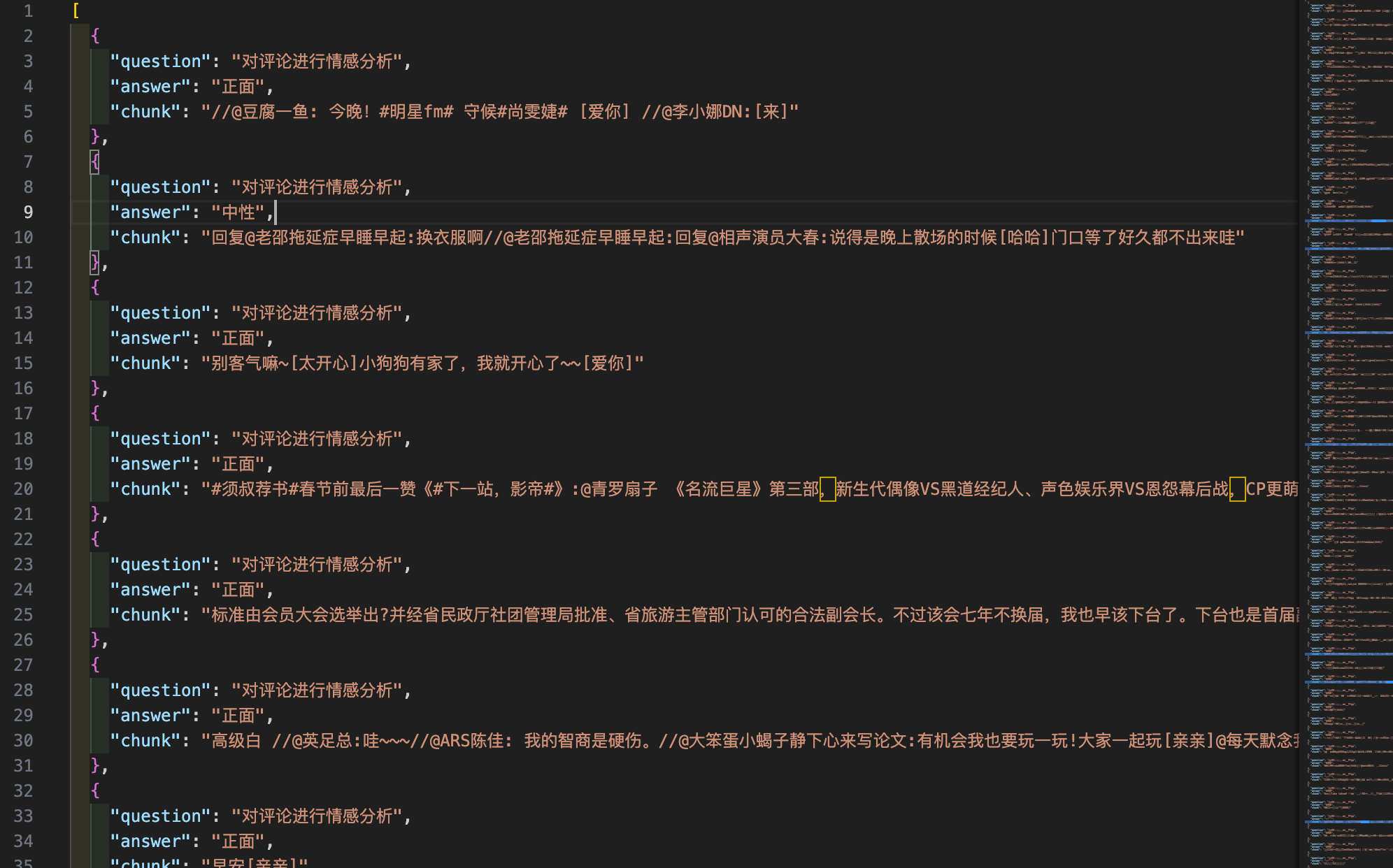 目标场景:现有一份微博评论数据,希望基于大模型分析评论是正面还是负面的,用于训练情感分类模型。