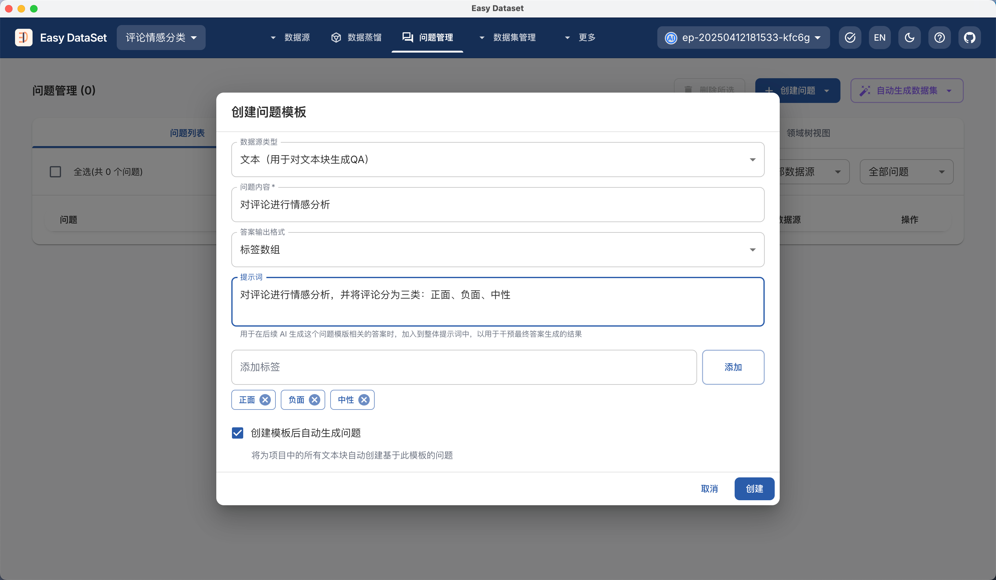 注意:创建问题模版后,会为当前所有图像均创建一个对应问题。