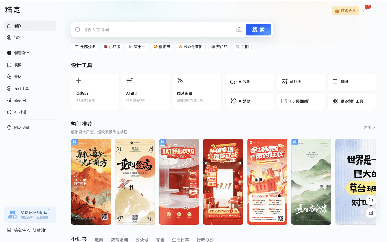 3. 稿定设计 AI:批量出图超方便,还能适配不同平台
