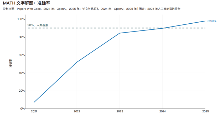 就连数学解题能力,大模型现在也已经超过人类基准了。