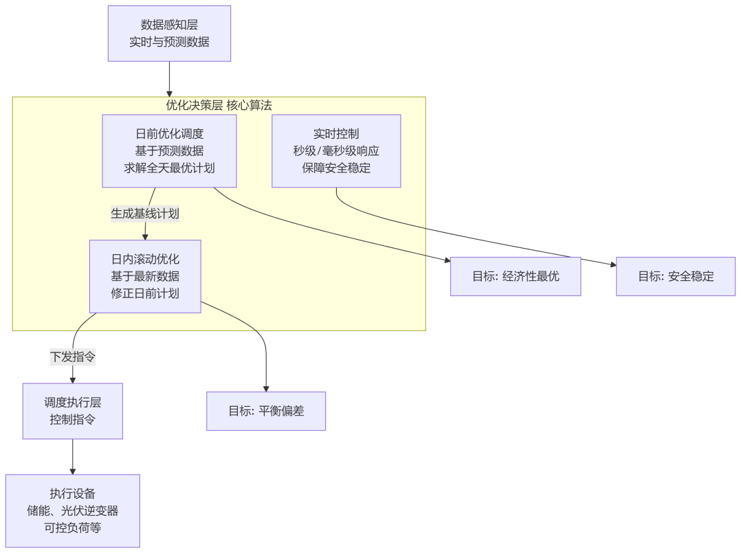 IOC的优化调度是一个分层、分时间尺度的过程,其核心算法流程与决策体系如下图所示,它清晰地展示了数据如何转化为行动: