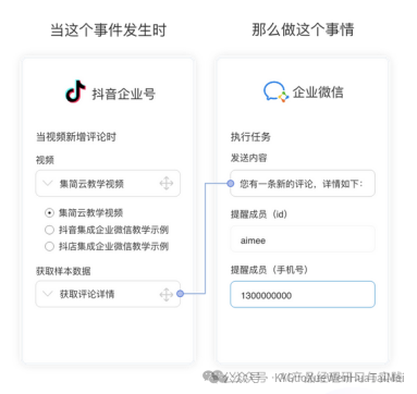 例如一个简单的客户线索收集机器人,在抖音有新增意向客户(例如咨询或留资)时,就触发企业微信的通知消息到群里。这类代理适合处理一些规则明确、不需要深度逻辑或历史上下文理解的任务。