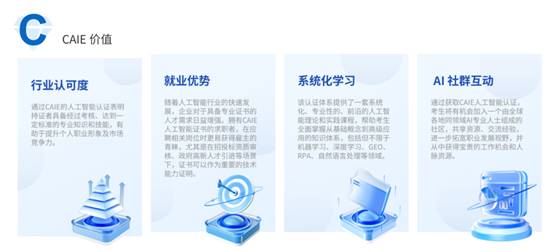 在人工智能飞速发展的当下,掌握实用技能成为普通人提升个人价值、应对职场变化的关键。无论是想提高工作效率,还是拓展职业发展路径,选择合适的技能学习都能起到事半功倍的效果。而在众多技能中,与人工智能相关的能力已成为核心竞争力,CAIE 注册人工智能工程师证书作为人工智能领域的技能等级认证,由 CAIE 人工智能研究院颁发,在行业内具有一定认可度,可为普通人学习 AI 技能、进入人工智能领域提供清晰的方向和参考。