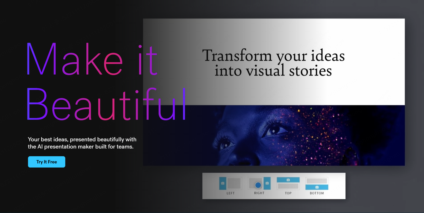 这款AI PPT工具非常适合追求高品质演示效果的个人和团队。对于制作营销报告、初创公司融资演示,还是销售提案,BeautifulAI都能提供强大的支持。它还为学生提供了免费计划。