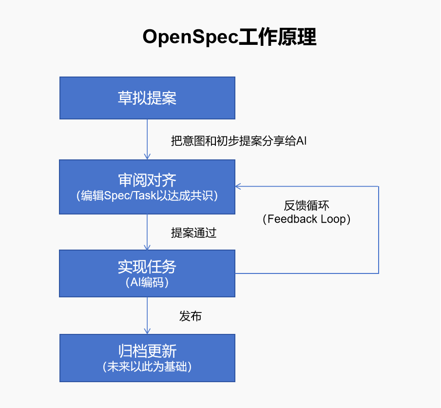 为了让写出的代码更规范,OpenSpec遵循的几个重要工作原则是: