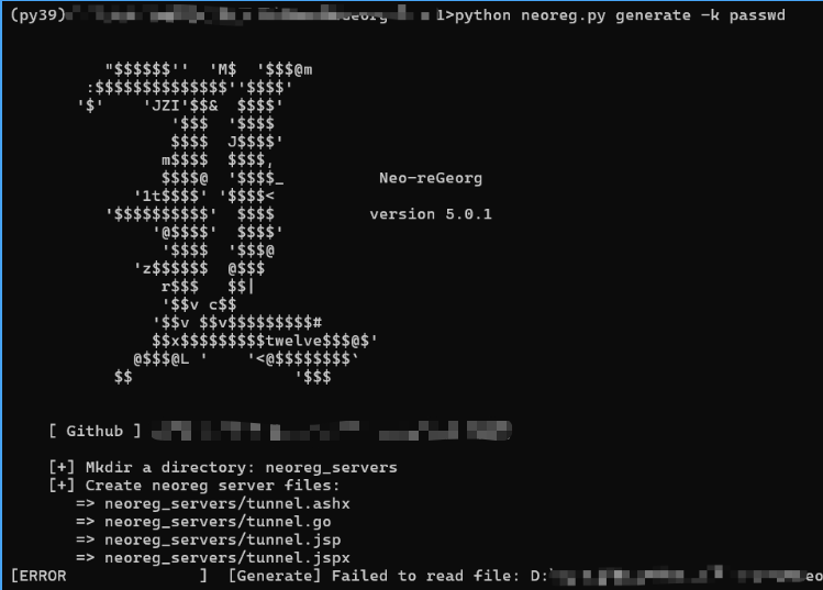 c、用neoreg.py连接web服务器,在本地建立socks代理